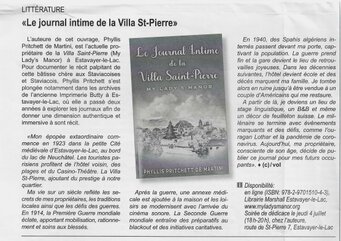 Journal La Broye n° 39 du 30.09.21 "C'est sa maison qui raconte le mieux Phyllis Pritchett"